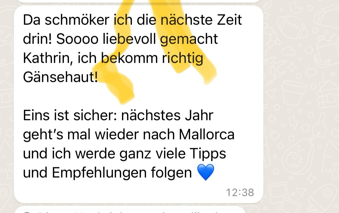 Auf knapp 180 handgeschriebene Seiten nehme ich Dich mit auf „mein Mallorca“. Mallorca wie ich es kennen – und lieben gelernt habe und zu meinem Herzensort geworden ist.